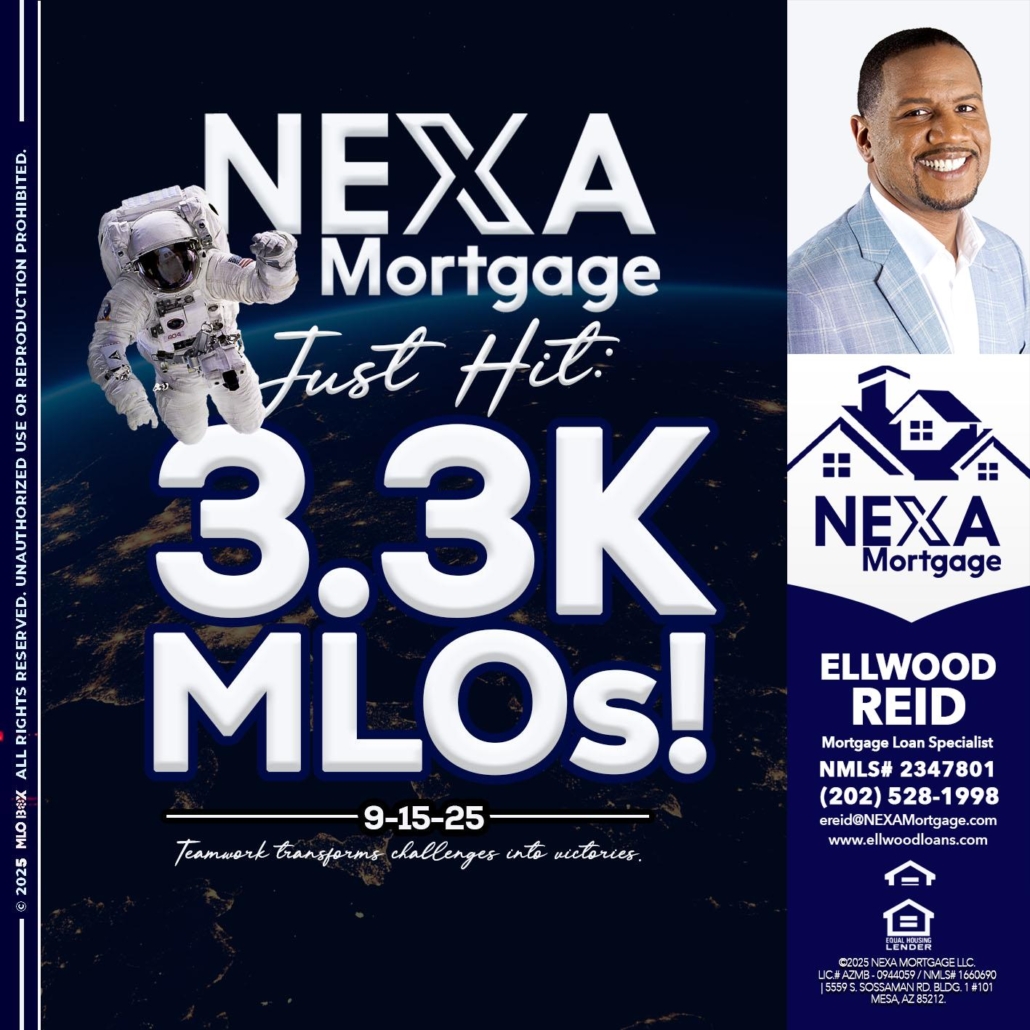 3.3K - Ellwood Reid -Mortgage Loan specialistHi, my name is Ellwood Reid. I’m a Loan Officer with NEXA Mortgage LLC., offering personalized mortgage solutions, fast customized quotes, great rates and service with integrity.