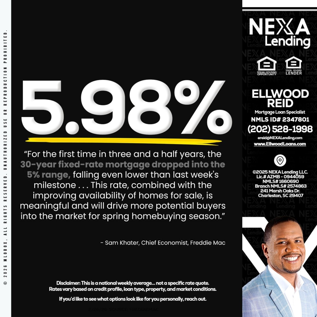 Hi, my name is Ellwood Reid. I’m a Loan Officer with NEXA Lending LLC., offering personalized mortgage solutions, fast customized quotes, great rates and service with integrity.