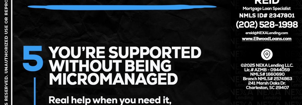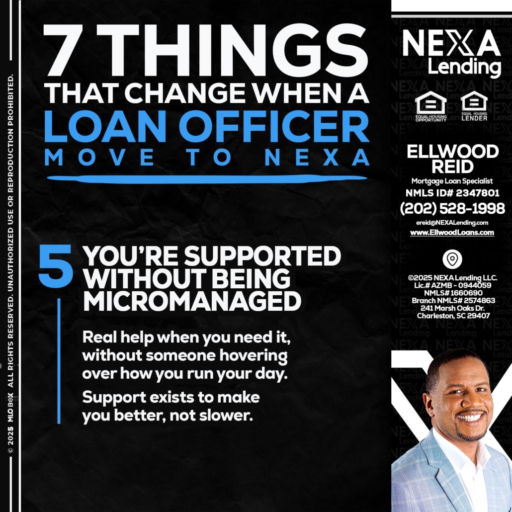 7 THINGS (5) - Ellwood Reid -Mortgage Loan specialistHi, my name is Ellwood Reid. I’m a Loan Officer with NEXA Lending LLC., offering personalized mortgage solutions, fast customized quotes, great rates and service with integrity.
