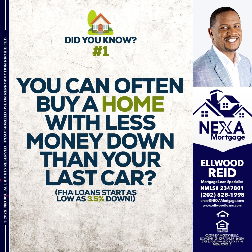 Hi, my name is Ellwood Reid. I’m a Loan Officer with NEXA Mortgage LLC., offering personalized mortgage solutions, fast customized quotes, great rates and service with integrity.