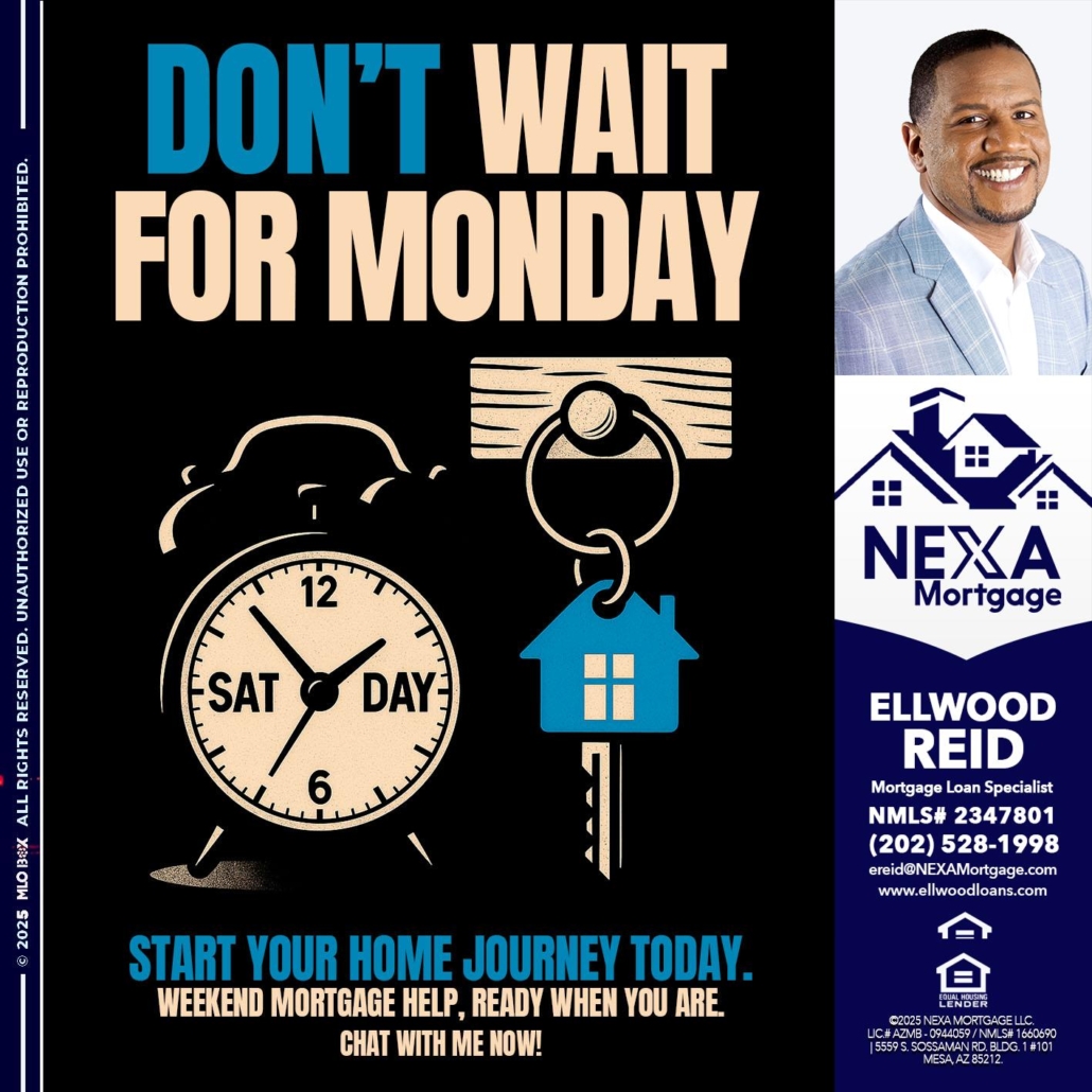 Hi, my name is Ellwood Reid. I’m a Loan Officer with NEXA Mortgage LLC., offering personalized mortgage solutions, fast customized quotes, great rates and service with integrity.