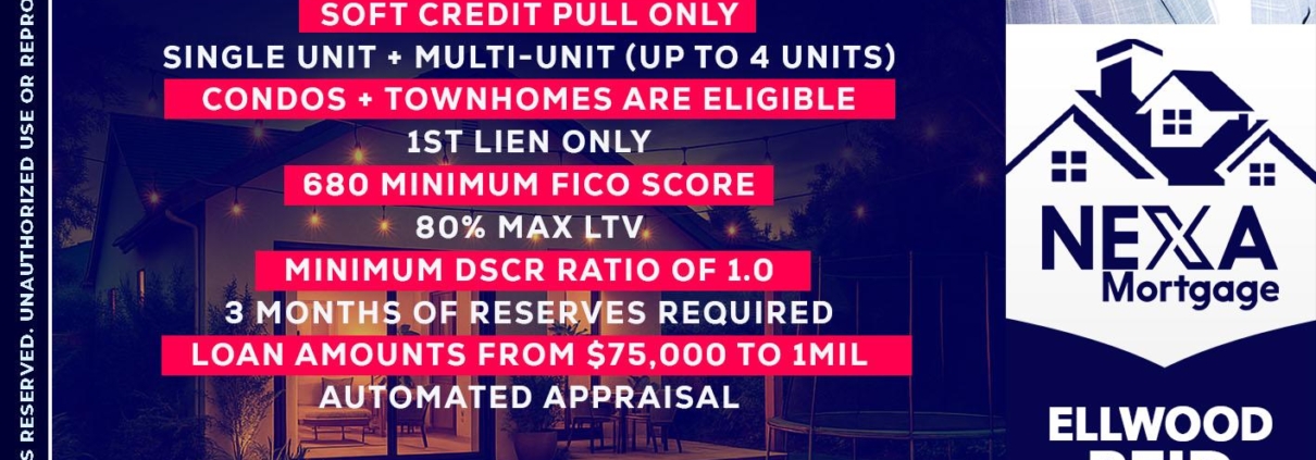 DSCR LOAN - Ellwood Reid -Mortgage Loan specialistHi, my name is Ellwood Reid. I’m a Loan Officer with NEXA Mortgage LLC., offering personalized mortgage solutions, fast customized quotes, great rates and service with integrity.