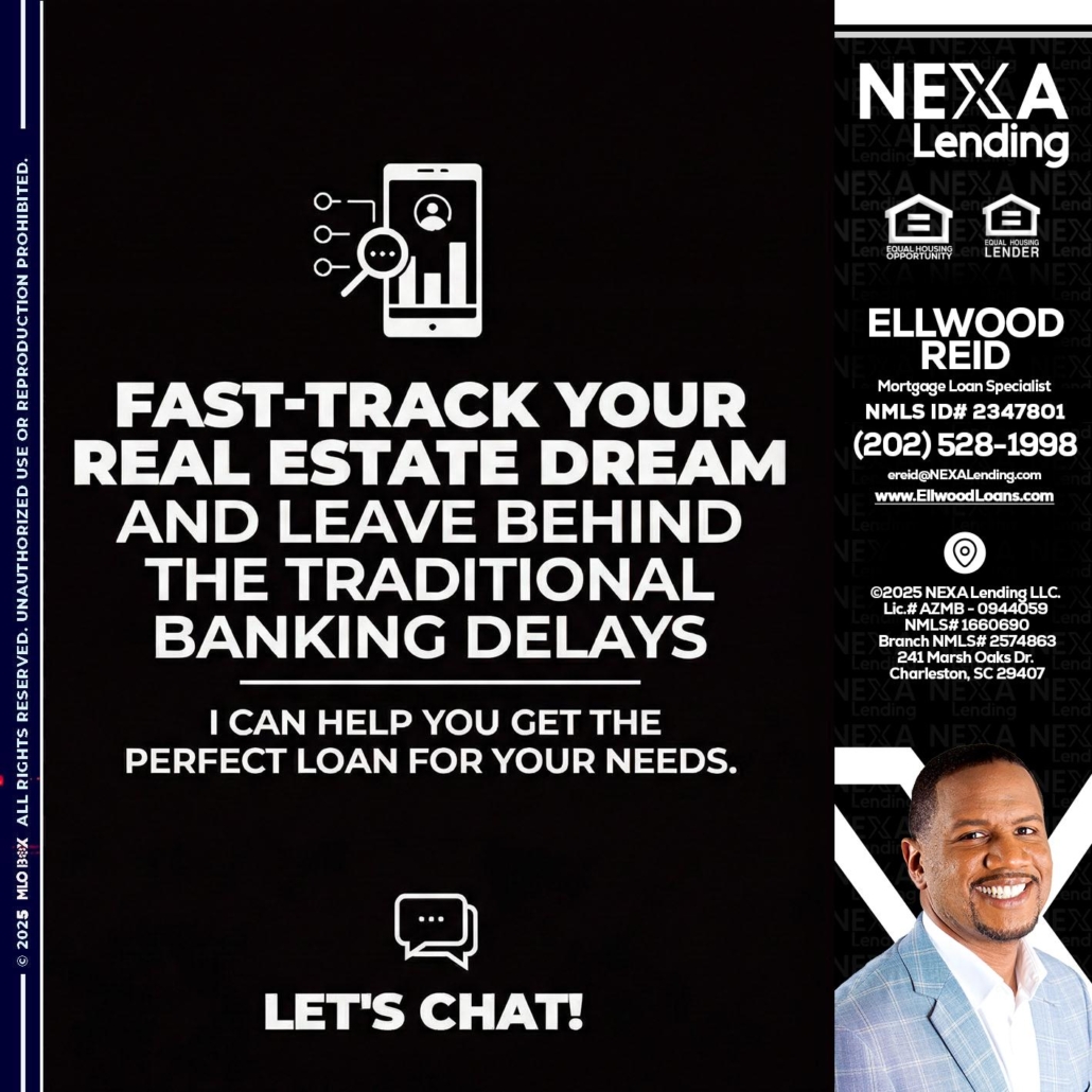 FAST TRACK - Ellwood Reid -Mortgage Loan specialistHi, my name is Ellwood Reid. I’m a Loan Officer with NEXA Lending LLC., offering personalized mortgage solutions, fast customized quotes, great rates and service with integrity.