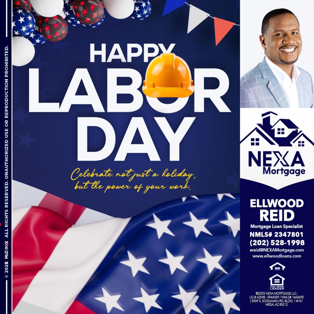 HAPPY LABOR DAY - Ellwood Reid -Mortgage Loan specialistHi, my name is Ellwood Reid. I’m a Loan Officer with NEXA Mortgage LLC., offering personalized mortgage solutions, fast customized quotes, great rates and service with integrity.