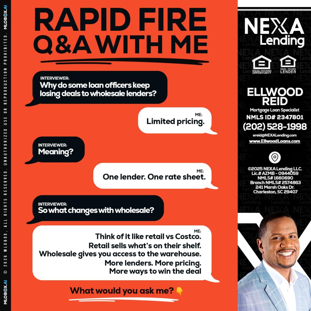 Hi, my name is Ellwood Reid. I’m a Loan Officer with NEXA Lending LLC., offering personalized mortgage solutions, fast customized quotes, great rates and service with integrity.