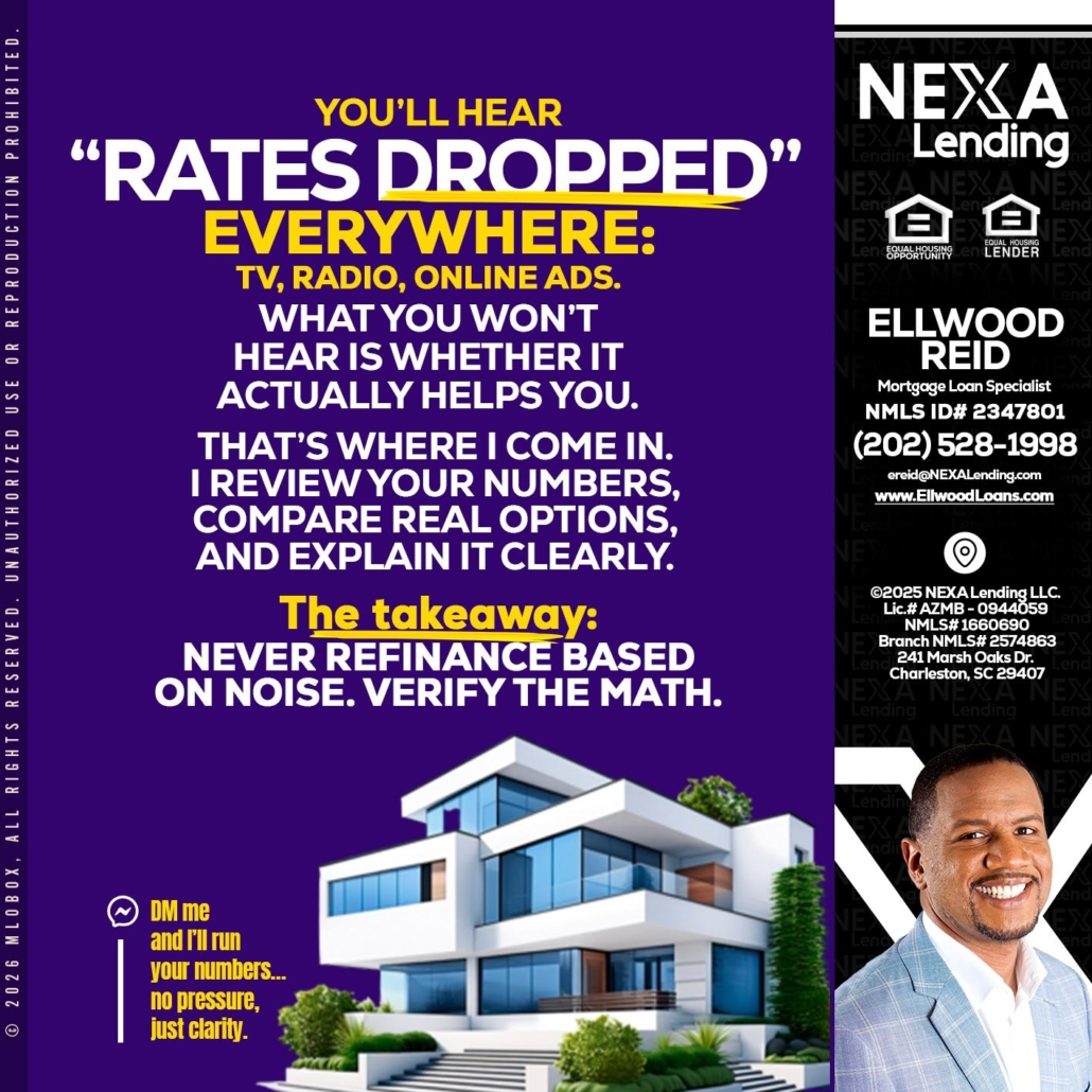 Hi, my name is Ellwood Reid. I’m a Loan Officer with NEXA Lending LLC., offering personalized mortgage solutions, fast customized quotes, great rates and service with integrity.
