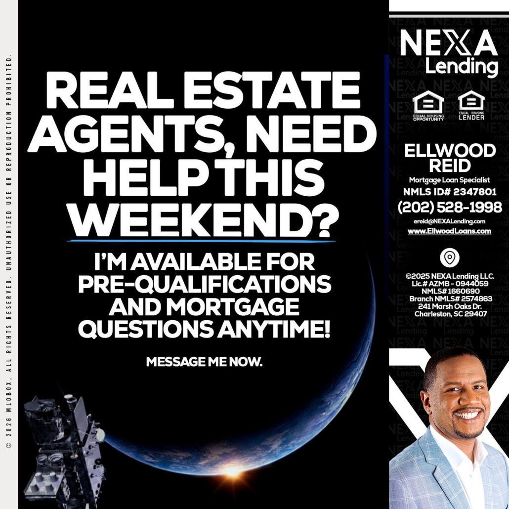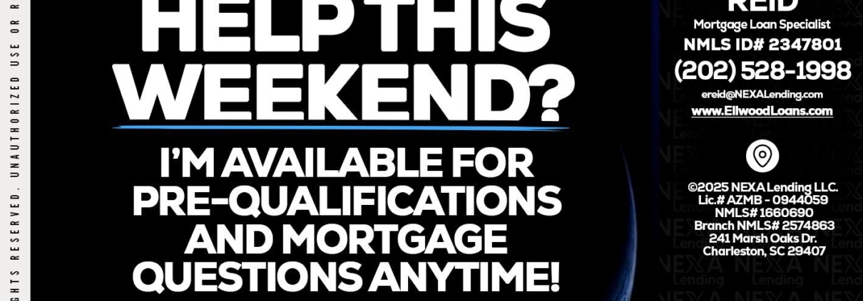 REAL ESTATE AGENTS - Ellwood Reid -Mortgage Loan specialistHi, my name is Ellwood Reid. I’m a Loan Officer with NEXA Lending LLC., offering personalized mortgage solutions, fast customized quotes, great rates and service with integrity.