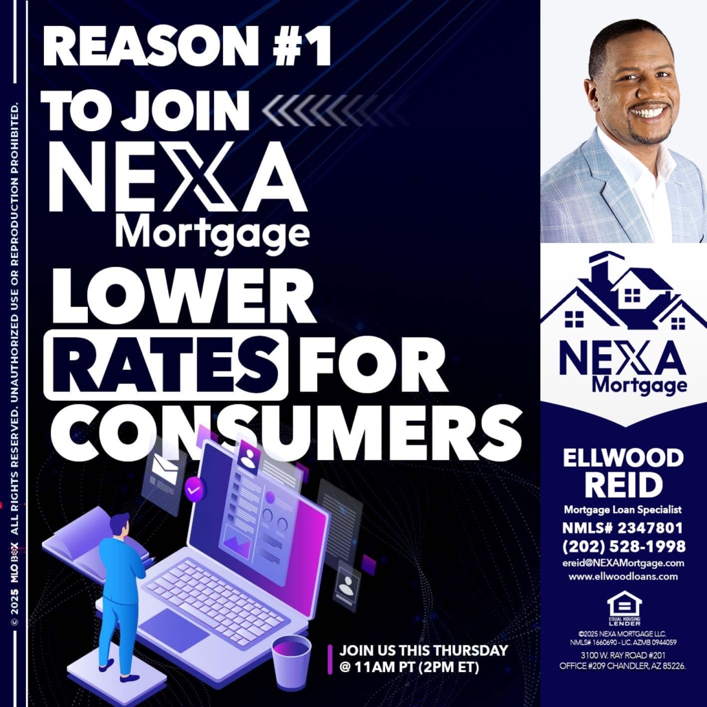 Hi, my name is Ellwood Reid. I’m a Loan Officer with NEXA Mortgage LLC., offering personalized mortgage solutions, fast customized quotes, great rates and service with integrity.