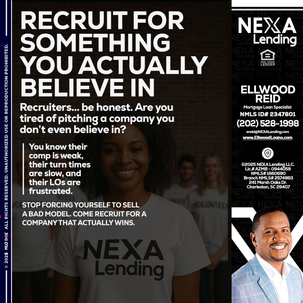 Hi, my name is Ellwood Reid. I’m a Loan Officer with NEXA Mortgage LLC., offering personalized mortgage solutions, fast customized quotes, great rates and service with integrity.