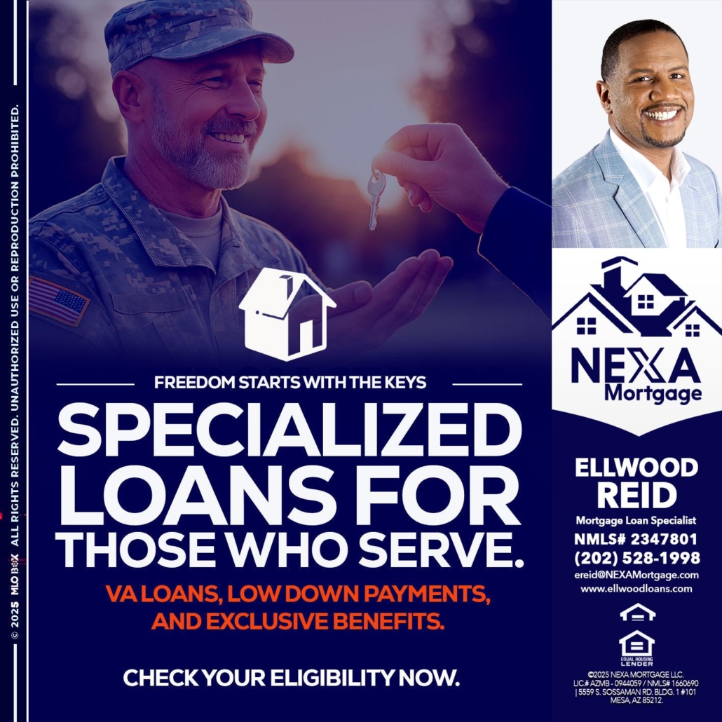 Hi, my name is Ellwood Reid. I’m a Loan Officer with NEXA Mortgage LLC., offering personalized mortgage solutions, fast customized quotes, great rates and service with integrity.