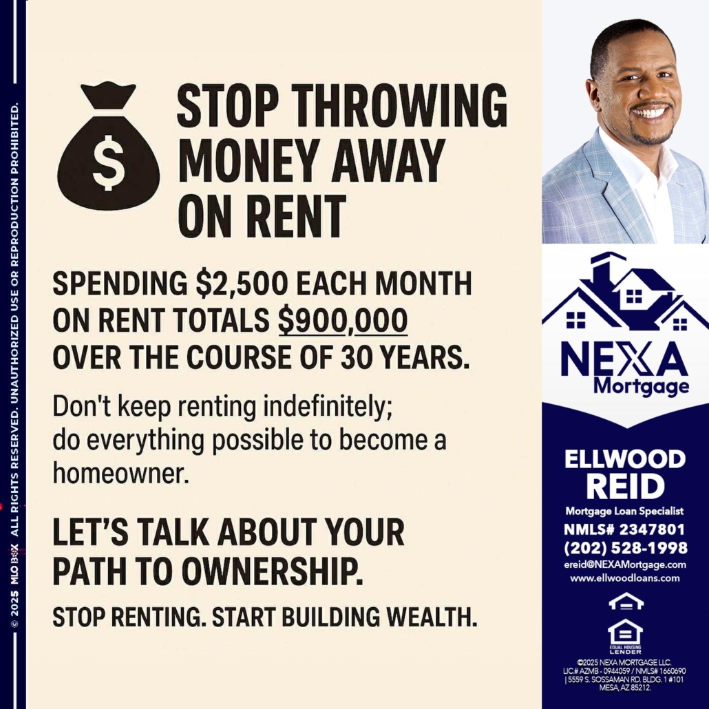 STOP THROWING - Ellwood Reid -Mortgage Loan specialistHi, my name is Ellwood Reid. I’m a Loan Officer with NEXA Mortgage LLC., offering personalized mortgage solutions, fast customized quotes, great rates and service with integrity.