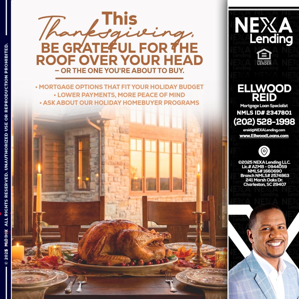 THIS THANKSGIVING - Ellwood Reid -Mortgage Loan specialistHi, my name is Ellwood Reid. I’m a Loan Officer with NEXA Mortgage LLC., offering personalized mortgage solutions, fast customized quotes, great rates and service with integrity.