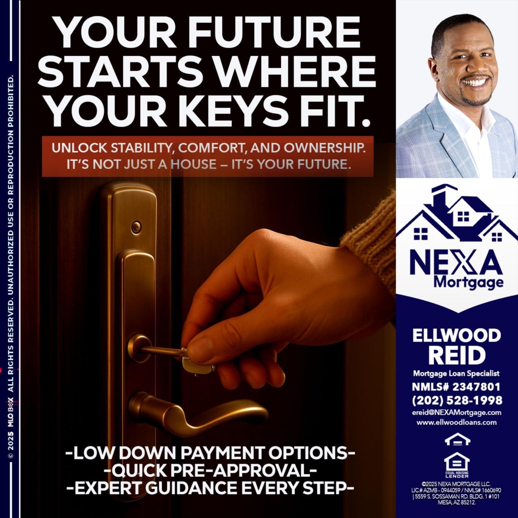 Hi, my name is Ellwood Reid. I’m a Loan Officer with NEXA Mortgage LLC., offering personalized mortgage solutions, fast customized quotes, great rates and service with integrity.