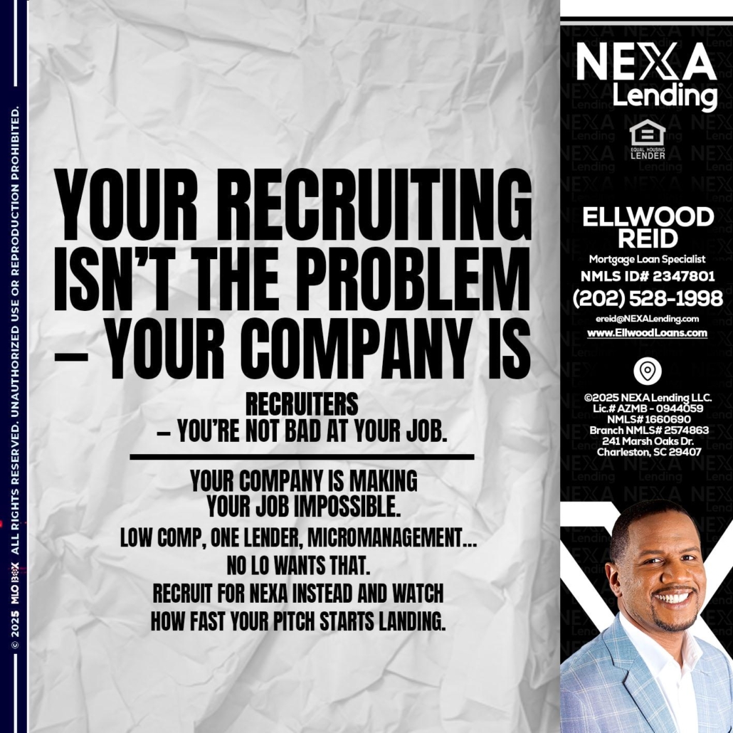 Hi, my name is Ellwood Reid. I’m a Loan Officer with NEXA Mortgage LLC., offering personalized mortgage solutions, fast customized quotes, great rates and service with integrity.